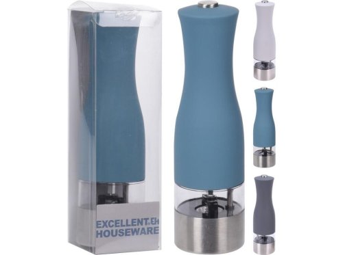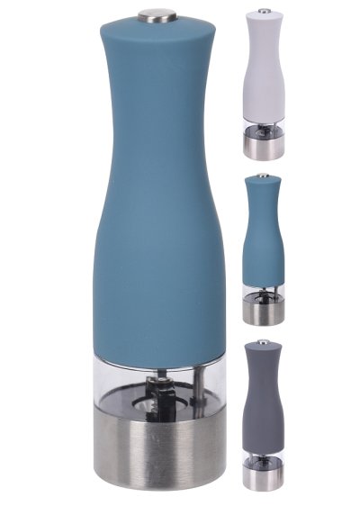 • automatický elektrický mlýnek na koření- měkčená úprava povrchu pro pohodlnou manipulaci- neklouže v ruce a dobře se tím pádem drží i jednou rukou- lze libovolně nastavit hrubost mletí- vhodný na jakékoliv hrubozrnné koření, ideální na pepř nebo sůl- napájení 6x AAA baterie (není součástí balení)- výška: 20,5 cm- průměr: 6 cm- barva: šedá / nerez