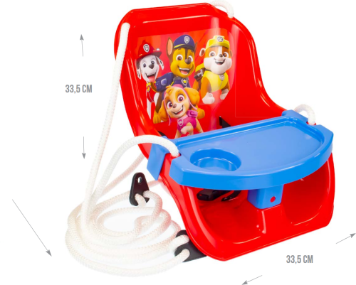 Dětská závěsná houpačka s motivem Tlapkové patroly, která je díky své konstrukci, určena pro velmi malé děti. Lana na obou stranách jsou zakončeny uchycením, na které lze houpačku snadno zavěsit. Houpačka má odnímatelný stoleček, který zároveň slouží jako zábrana proti vypadnutí Rozměr: 43 x 33 x 26 cm Vhodné pro děti od 1 do 3 let. Nosnost 25 kg.