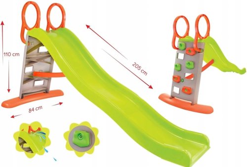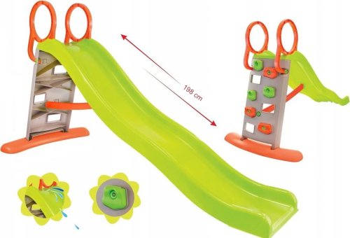 Vaše zahrada se promění v zábavné hřiště! Možnost připojení zahradní hadice. Skluznou plochu můžete vlhčit pro snadnější a zábavnější klouzání. Tradiční schody byly u skluzavky nahrazeny lezeckou stěnou, která bezpochyby rozproudí zábavu. Vhodné pro vnitřní i venkovní vyžití. Kulaté a hladké úchyty v horní části schodů dávají dětem pocit bezpečí při hraní. rozměry skluzavky: 198 x 198 x 110 cm. Délka skluzavky je 198 cm. Maximální nosnost 50 kg. Poznámka: Dodáváno v rozloženém stavu. Vhodné pro děti od 3 let.