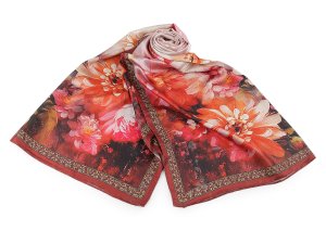 Elegantní saténový šátek s květy představuje luxusní doplněk, který okamžitě povýší jakýkoliv outfit.