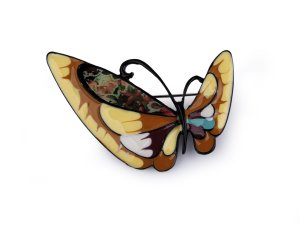 Brož motýla s barevným smaltem je elegantní a působivý doplněk, který dokáže oživit každý outfit.