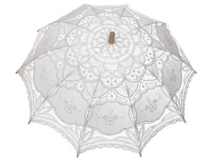 Romantický krajkový deštník, kde se jemná krajka prolíná s bavlněným vyšívaným plátnem v nádherných, propracovaných vzorech.