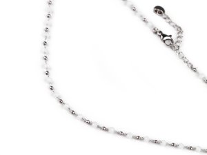 Jemný řetízkový náhrdelník z kvalitní nerezové oceli je ozdobený barevnými korálky syntetických minerálů a perlami.