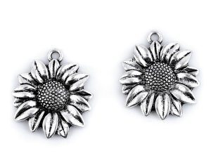Přívěsek s květem slunečnice má kulatý tvar, je jednostranný.Materiálynekorodující kov - pratelnýVlastnostiPrůměr: 23 mmPrůvlek: 2 mmJednostranný Nemagnetický kov
