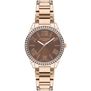 Dámské náramkové hodinky Napájení z baterie Průměr pouzdra 36,0 mm Pouzdro ve tvaru kruhu Kovové pouzdro Růžové zlato barva pouzdra Kovový tah Růžové zlato barva tahu Ručičkový ciferník Hnědá barva ciferníku …