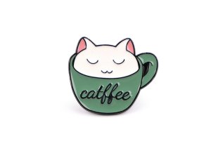 Malá stylová brož s kočkou je ozdobená barevným smaltem.