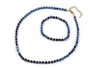 Luxusní sada náhrdelníku a náramku je vyrobená z broušených korálků pokoveného hematitu a kvalitní nerezové oceli.