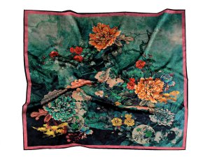 Saténový šátek s potiskem je velice kvalitní, elegantní, využijete jej na každodenní nošení.