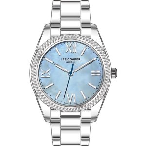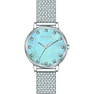 Dámské náramkové hodinky Napájení z baterie Průměr pouzdra 32,0 mm Pouzdro ve tvaru kruhu Kovové pouzdro Stříbrná barva pouzdra Kovový tah Stříbrná barva tahu Ručičkový ciferník Modrá barva ciferníku …