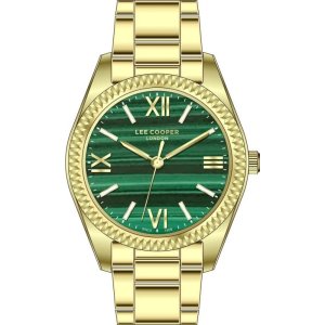 Dámské náramkové hodinky Napájení z baterie Průměr pouzdra 32,0 mm Pouzdro ve tvaru kruhu Kovové pouzdro Zlatavá barva pouzdra Kovový tah Zlatavá barva tahu Ručičkový ciferník Zelená barva ciferníku …