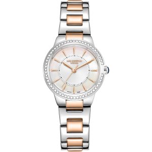 Dámské náramkové hodinky Napájení z baterie Průměr pouzdra 30,0 mm Pouzdro ve tvaru kruhu Kovové pouzdro Stříbrná barva pouzdra Kovový tah Růžové zlato barva tahu Ručičkový ciferník Stříbrná barva ciferníku …