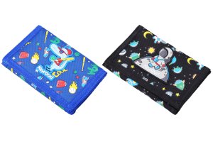 Peněženka na suchý zip 12,5x25 cm. 2 různé druhy.Modrá s dinosaurem. Černá s kosmonautem