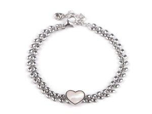 Řetízkový náramek z nerezové oceli je ozdobený motivem srdce.