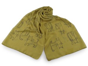 Velký luxusní šátek typu kašmír je ozdobený motivem koček.