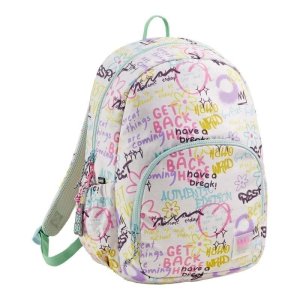Moderní, lehký batoh v jemném barevném motivu určený začínajícím teenage holkám.