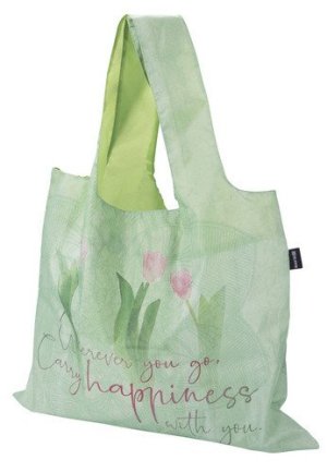 Do velké tašky z [laminované] netkané textilie s potiskem růží naskládáte plno věcí.
