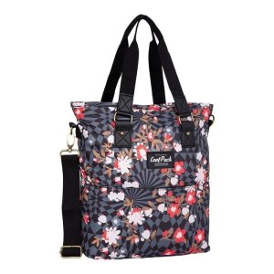 Do velké tašky z [laminované] netkané textilie s potiskem růží naskládáte plno věcí.
