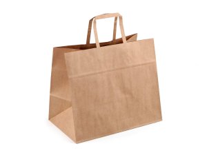 Jednobarevná hnědá papírová taška s plochými uchy, ideální řešení pro balení, které je praktické a zároveň šetrné k životnímu prostředí Hnědý 100% recyklovaný papír (gramáž 120g/m2) Skvělý základ pro …