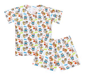 Pyžamo krátký rukáv, krátké kalhoty materiál 95% Bavlna, 5% Elastan 180g/m2 praní na 40°C šetrné odstředění sušit v sušičce nedoporučujeme žehlit do 110°C Pyžamo s krátkým rukávem pro naše nejmenší.