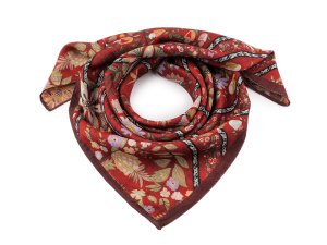 Elegantní saténový šátek s motivem velkých barevných květů.