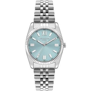 Dámské náramkové hodinky Napájení z baterie Průměr pouzdra 34,0 mm Pouzdro ve tvaru kruhu Kovové pouzdro Stříbrná/zlatá barva pouzdra Kovový tah Stříbrná/zlatá barva tahu Ručičkový ciferník Hnědá barva …
