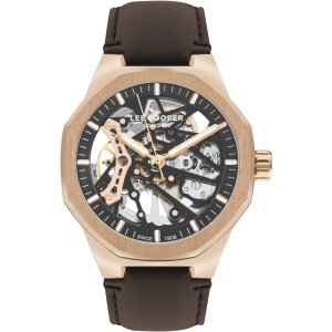 Pánské náramkové hodinky Automatický pohon Průměr pouzdra 43,0 mm Pouzdro ve tvaru osmihranu Kovové pouzdro Růžové zlato barva pouzdra Kožený tah Hnědá barva tahu Ručičkový ciferník Materiál skla - minerální …