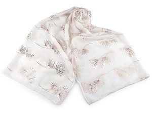 Šátek s metalickým potiskem větviček je velice příjemný na dotek, je vzdušný a lehký.