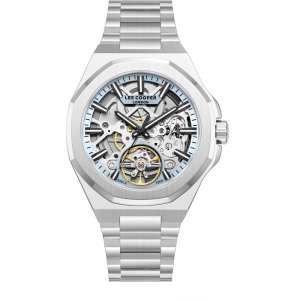 Pánské náramkové hodinky Mechanický pohon Průměr pouzdra 44,0 mm Pouzdro ve tvaru kruhu Kovové pouzdro Stříbrná barva pouzdra Kovový tah Stříbrná barva tahu Ručičkový ciferník Ciferník s dvanácti indexy …