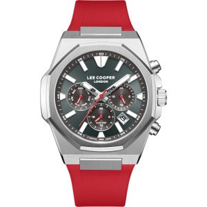 Pánské náramkové hodinky Napájení z baterie Průměr pouzdra 44,0 mm Pouzdro ve tvaru osmihranu Kovové pouzdro Stříbrná barva pouzdra Červená barva tahu Ručičkový ciferník Černá barva ciferníku Ciferník …