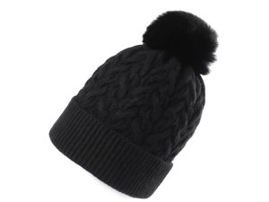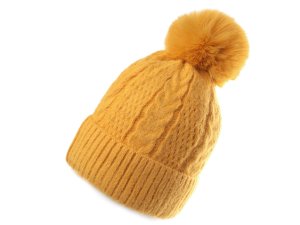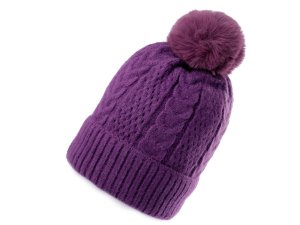 Pletená čepice s bambulí a ohrnutým okrajem má krásný copánkový vzor.