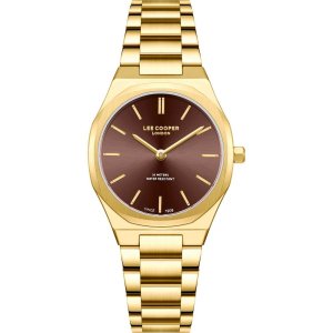 Dámské náramkové hodinky Napájení z baterie Strojek MIYOTA GN12 Průměr pouzdra 28,0 mm Pouzdro ve tvaru kruhu Ocelové pouzdro Zlatavá barva pouzdra Ocelový tah Zlatavá barva tahu Ručičkový ciferník Hnědá …
