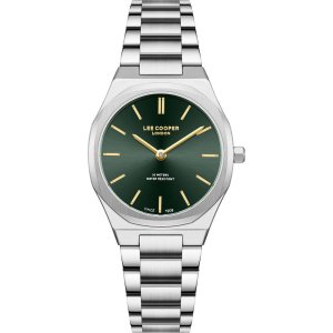 Dámské náramkové hodinky Napájení z baterie Průměr pouzdra 30,0 mm Pouzdro ve tvaru kruhu Kovové pouzdro Stříbrná barva pouzdra Kovový tah Stříbrná/zlatá barva tahu Ručičkový ciferník Zelená barva ciferníku …