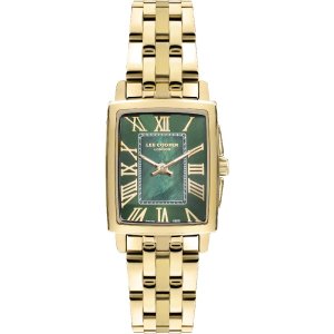Dámské náramkové hodinky Napájení z baterie Průměr pouzdra 32,0 mm Pouzdro ve tvaru obdelníku Kovové pouzdro Zlatavá barva pouzdra Kovový tah Zlatavá barva tahu Ručičkový ciferník Zelená barva ciferníku …