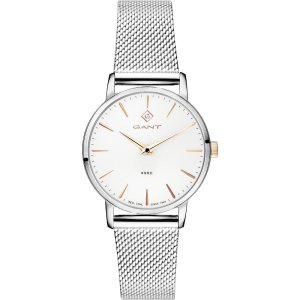 Dámské náramkové hodinky Napájení z baterie Průměr pouzdra 33,0 mm Pouzdro ve tvaru kruhu Kovové pouzdro Stříbrná/zlatá barva pouzdra Kovový tah Stříbrná/zlatá barva tahu Ručičkový ciferník Stříbrná …