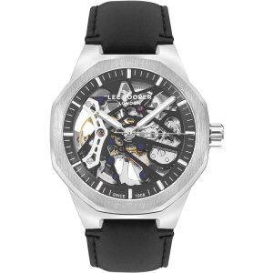 Pánské náramkové hodinky Automatický pohon Průměr pouzdra 43,0 mm Pouzdro ve tvaru osmihranu Kovové pouzdro Stříbrná barva pouzdra Kožený tah ČERNÉ barva tahu Ručičkový ciferník Materiál skla - minerální …