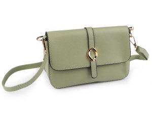 Crossbody kabelka je ozdobená přezkou s kovovou ozdobou.