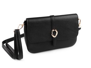 Malá crossbody kabelka je ozdobená přezkou s kovovou ozdobou.