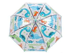 Dětský vystřelovací deštník s potiskem dinosaurů děti nadchne, protože díky průhlednému potahu uvidí ven.