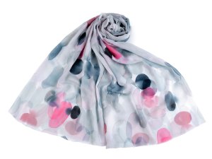 Šátek s barevným vzorem je vzdušný a lehounký, velice příjemný na dotek.