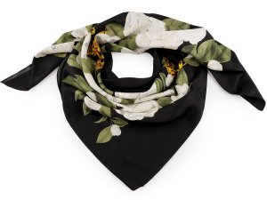 Saténový šátek s potiskem růží je velice kvalitní, elgantní, využijete jej na každodenní nošení.