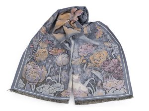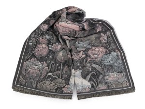 Velký luxusní šátek typu kašmír je ozdobený květinovým motivem.