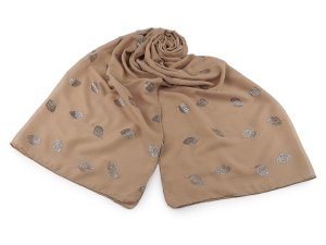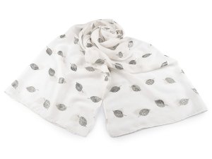 Šátek s metalickým potiskem listů je velice příjemný na dotek, je vzdušný a lehký.