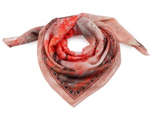 Šátek s bohatým potiskem nabízí několik stylových využití.