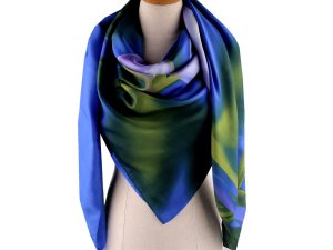 Velký saténový šátek s jemným motivem květů využijete na každodenní nošení.