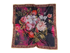 Saténový šátek s potiskem je velice kvalitní, elgantní, využijete jej na každodenní nošení.