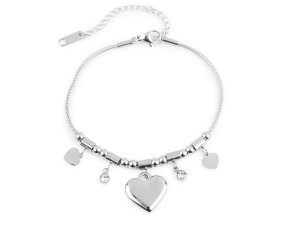 Řetízkový náramek z nerezové oceli je ozdobený motivem srdce.