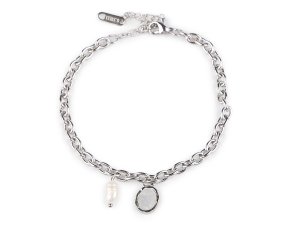 Řetízkový náramek ozdobený perleťovým přívěskem a říční perlou.