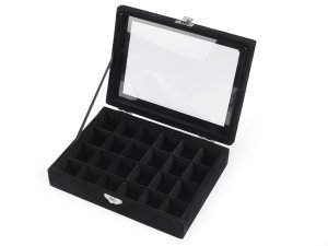 Sametová šperkovnice s průhledem je elegantní a praktická, nadchne každou ženu. Šperkovnice má kovové zapínání, vnitřní prostor můžete sami upravovat.