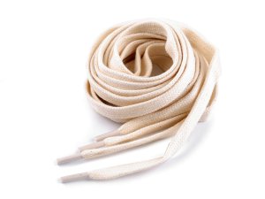 Ploché bavlněné tkaničky jsou opatřené koncovkami.