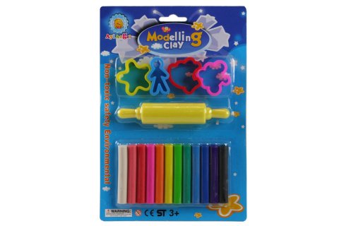 Modelína sada obsahuje 12 barev modelíny.váleček o velikosti cca 13 cm a 4 tvořítka.Rozměr balení cca 17 cm X 25 cm.Věk 3+
